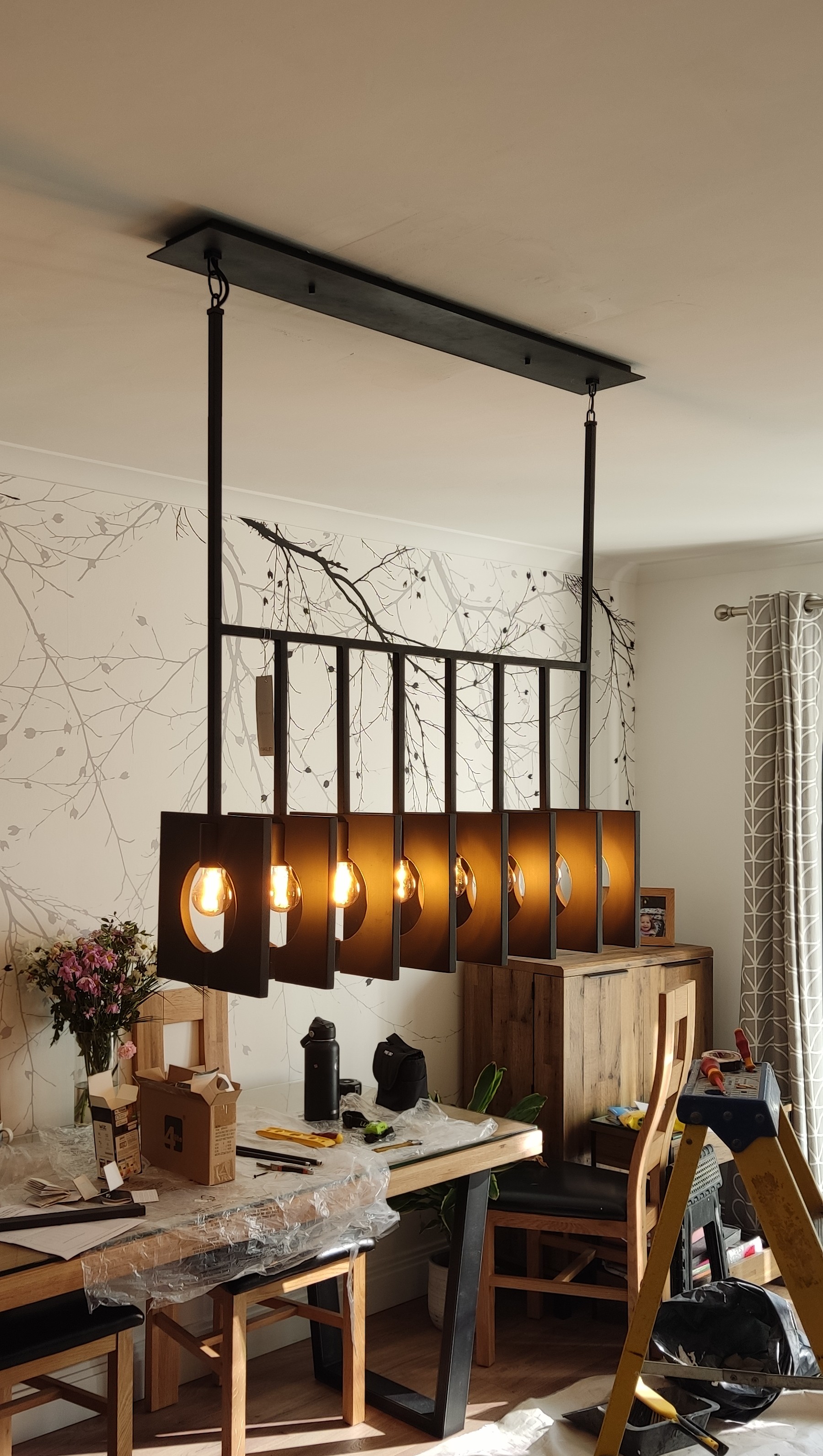 This was a time when a job comes along that really lights up your day—quite literally! Client's request had led me to the pleasure (and shoulder workout) of installing this stunning 17kg dining light fixture over a dining table. And no, it didn’t come with a warning label for biceps.